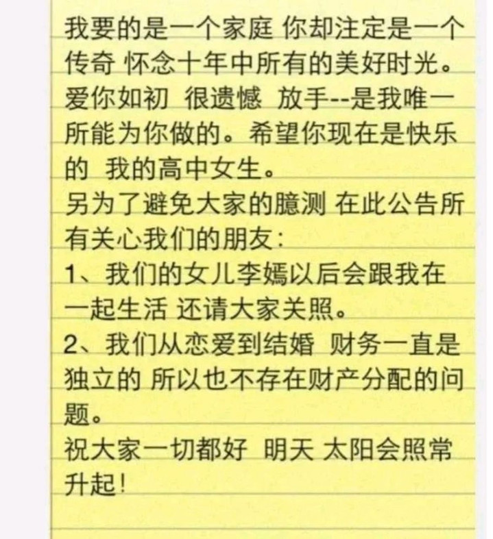 而他跟王菲离婚的时候,王菲的文案简短决绝,而他却发了很大篇幅的长文,充满了情感。
