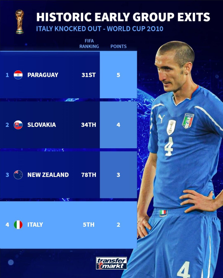 2010年,卫冕冠军意大利排名小组最后无缘晋级