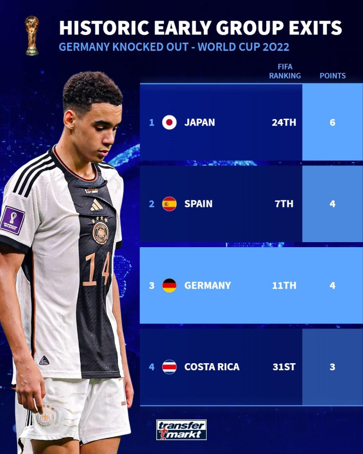 2022年,德国再次止步小组赛,而日本表现出色夺得小组头名