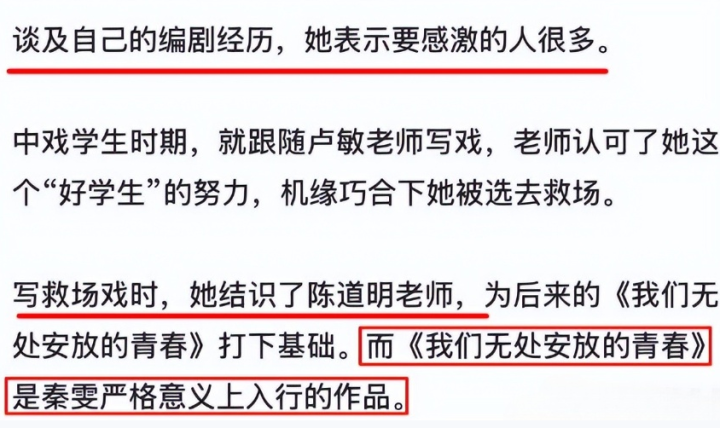 当年刚出道的秦雯,因为能力出色被陈道明赏识,所以在拍摄《我们无处安放的青春》时,就把秦雯也介绍到了团队当中。