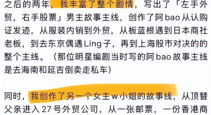 主角阿宝的主要事业线、汪小姐下海经商等等重要的主线剧情,全是他创作出来的。