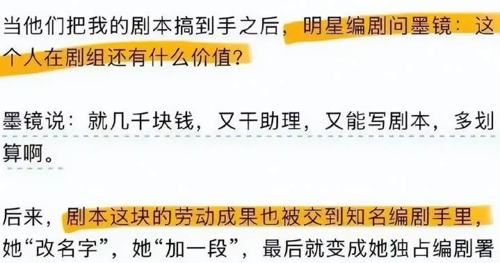 这话谁听了不寒心?大导演和明星编剧就是这种人品吗?